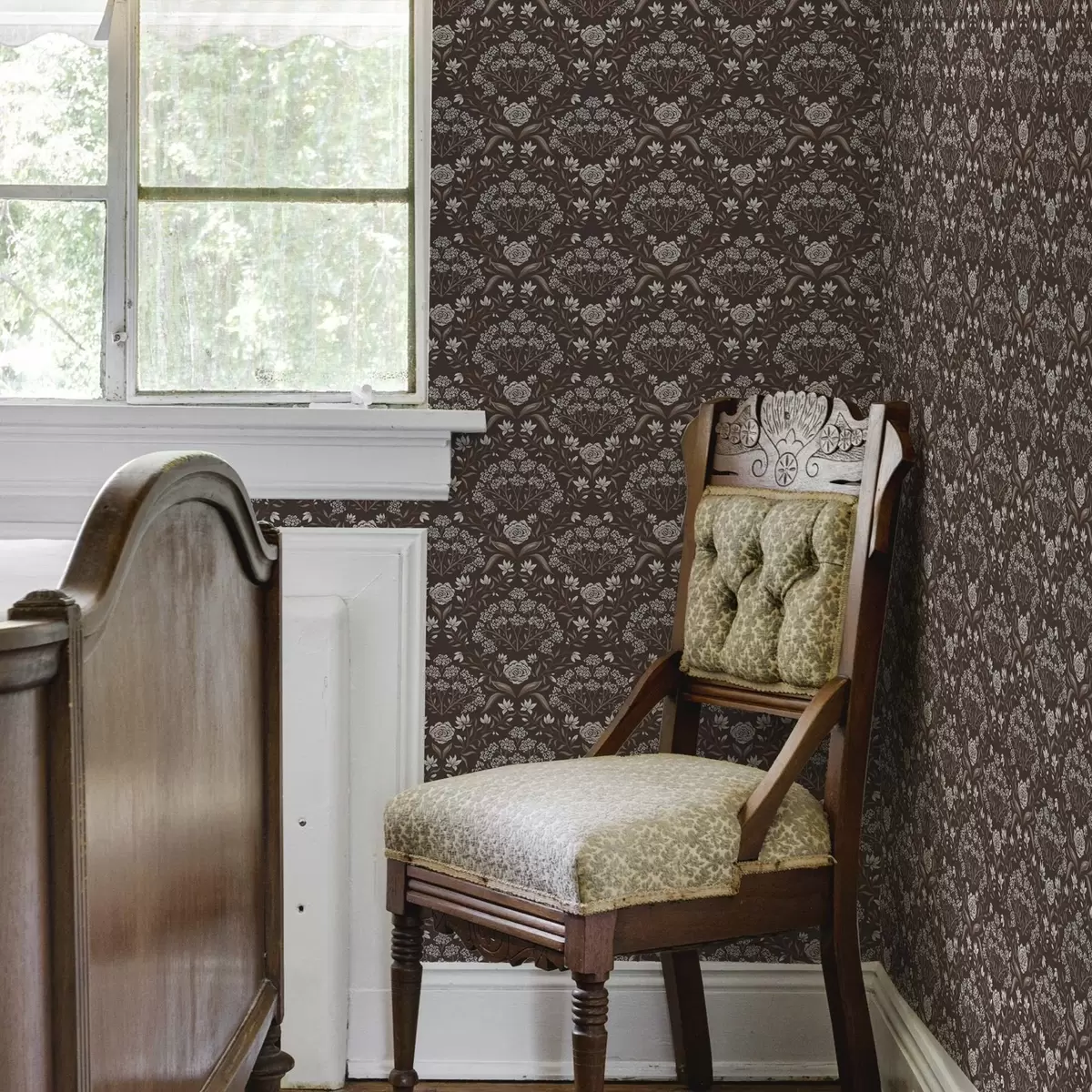 Papiers peints Damassé chocolat noir avec pivoines et perce-neige Nr. a00603v2