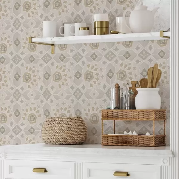 Papiers peints Motif géométrique en mosaïque dans des tons beiges chauds Nr. a00606