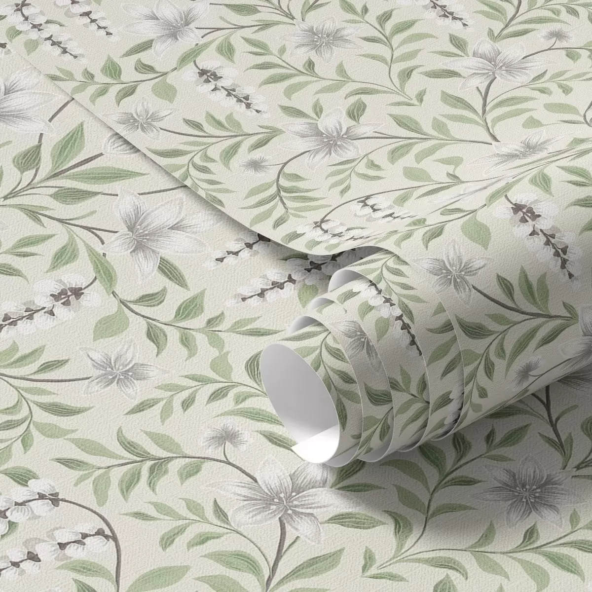 Papiers peints Ornement végétal léger avec fleurs blanches, symétrie Nr. a00609