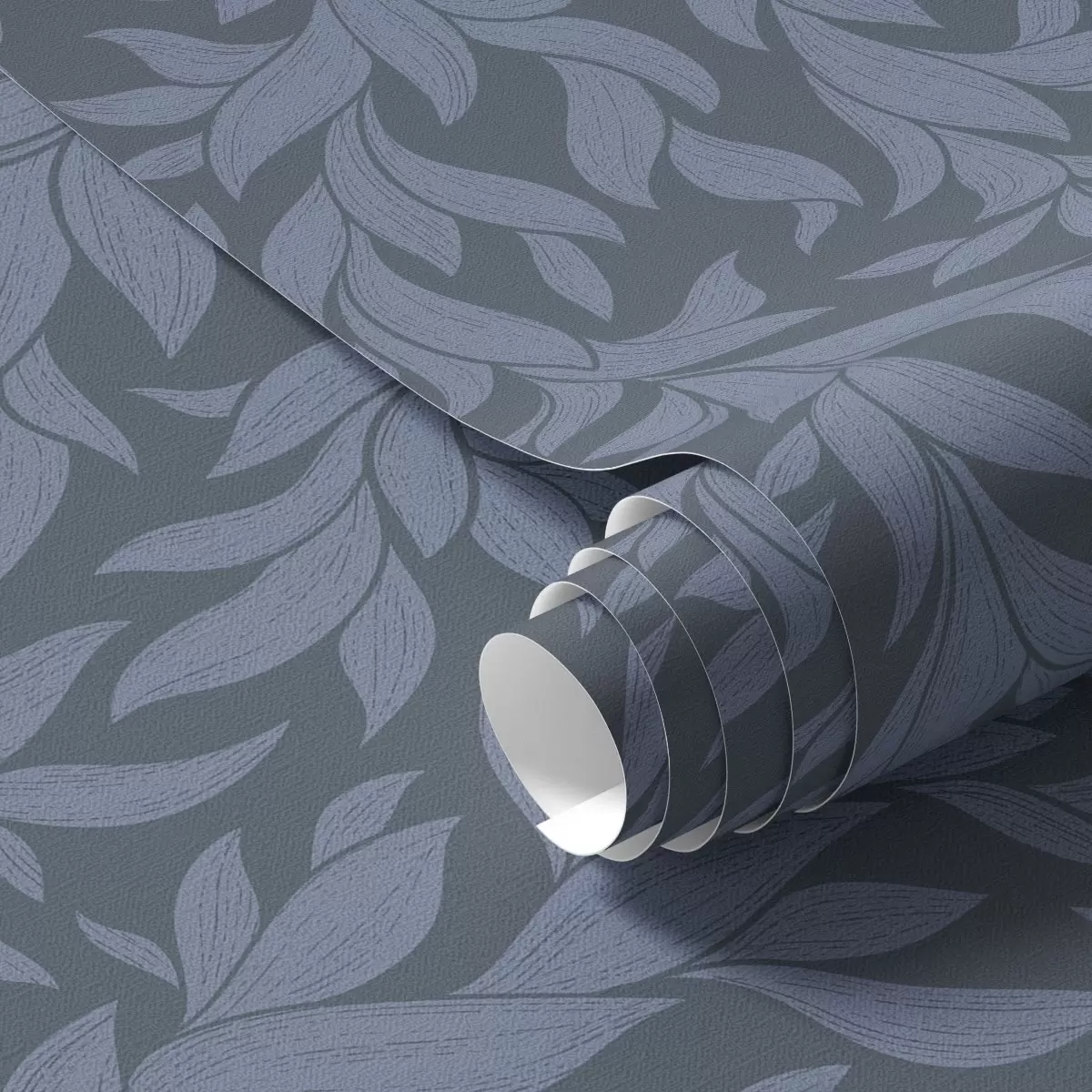 Papiers peints Fond bleu graphite et feuilles bleues, trait texturé Nr. a00616v2
