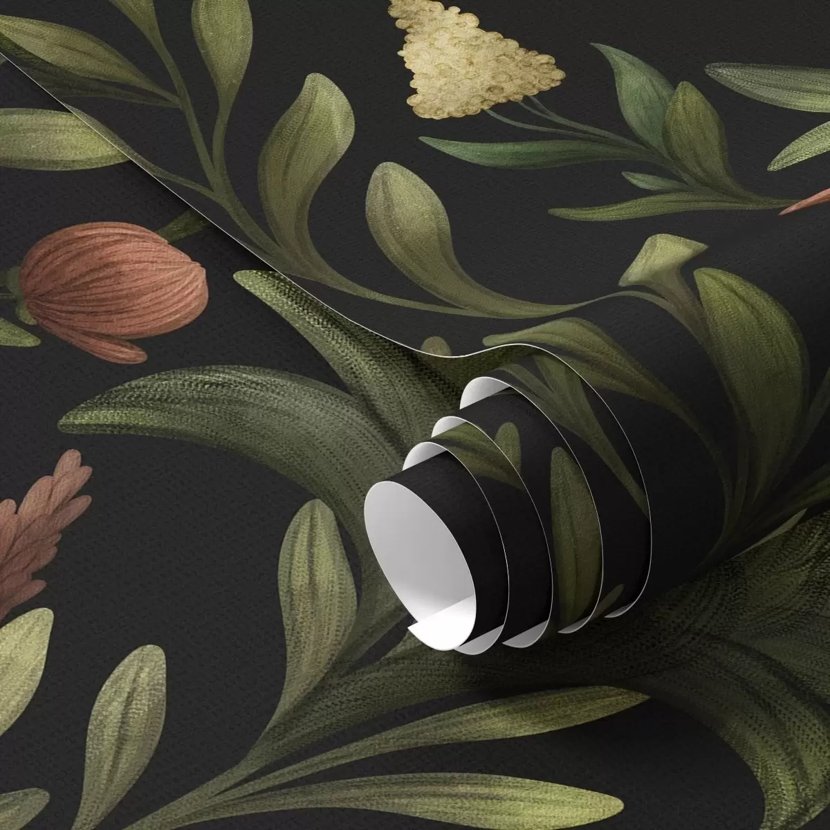 Papiers peints Hautes herbes et fleurs sur fond noir, imprimé détaillé Nr. a00620