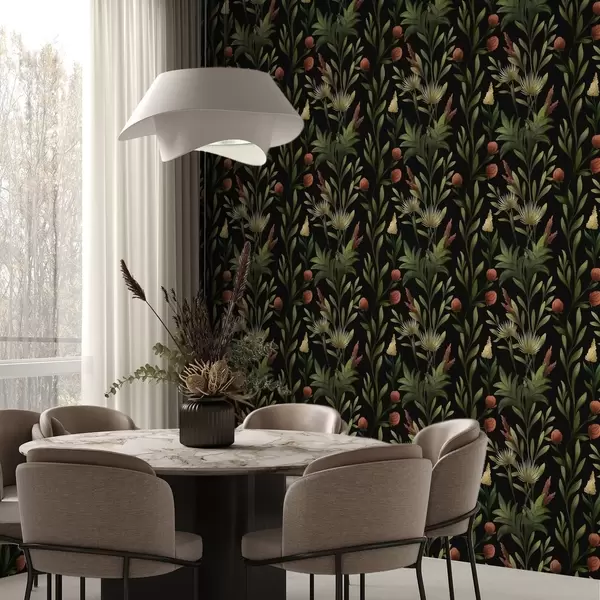 Papiers peints Hautes herbes et fleurs sur fond noir, imprimé détaillé Nr. a00620