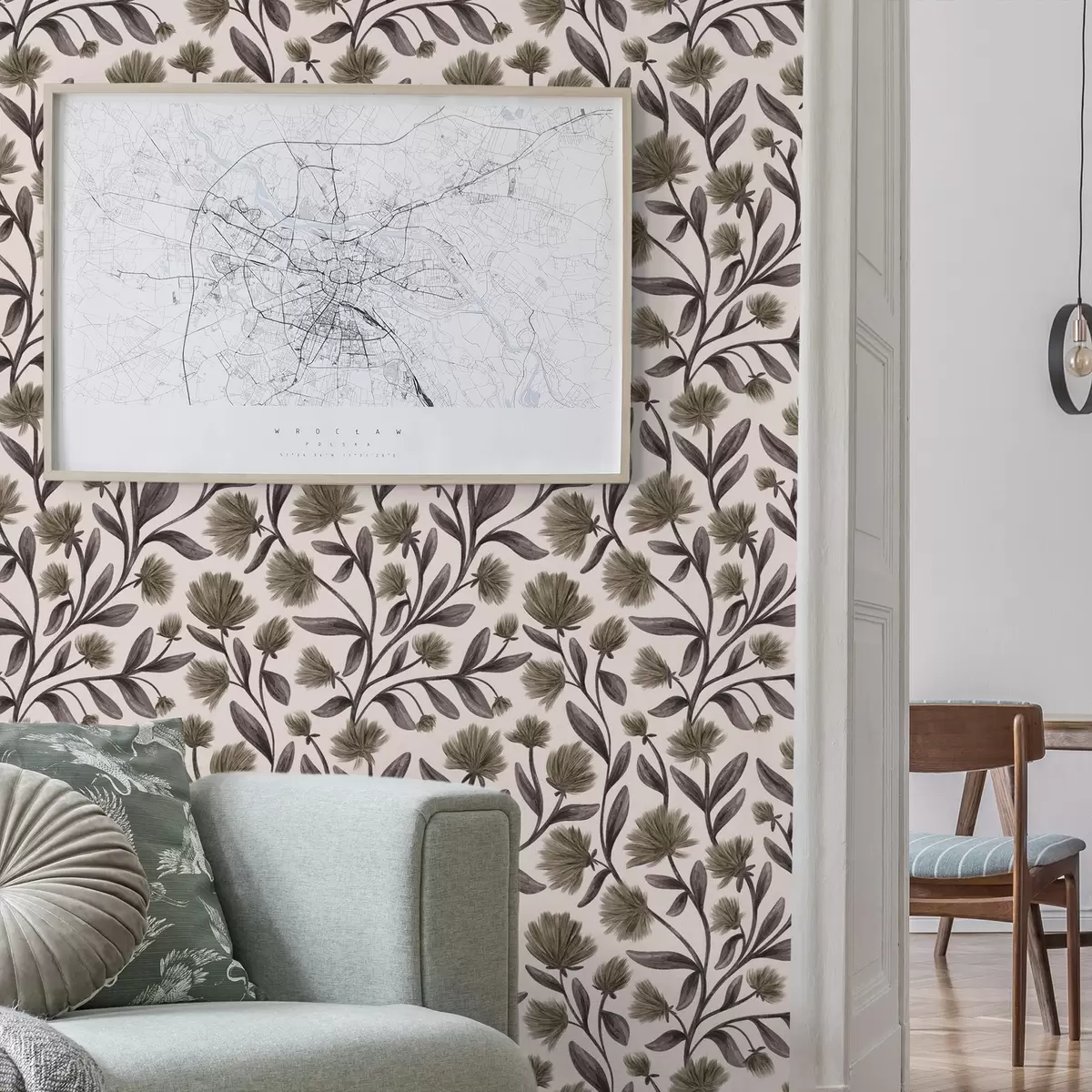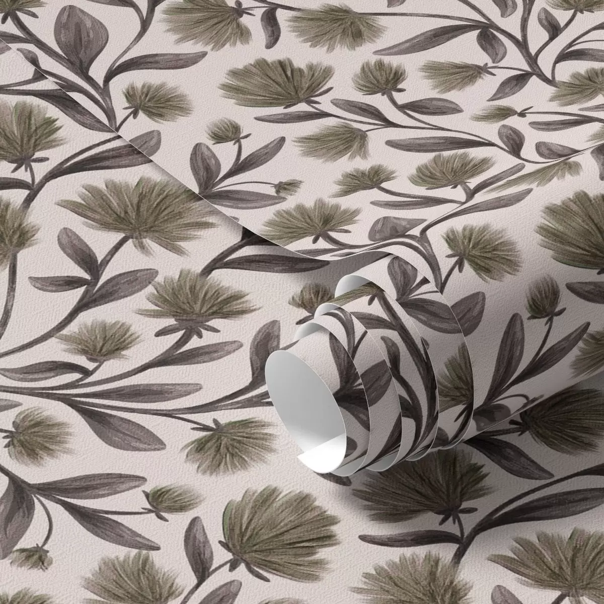 Papiers peints Fleurs sauvages dans des tons gris-olive sur fond crème Nr. a00623v1