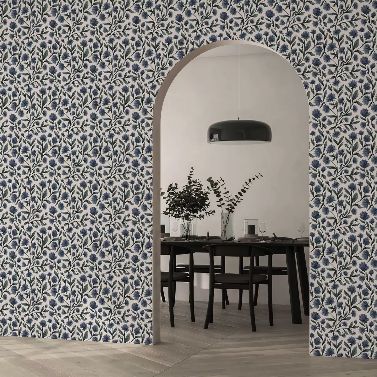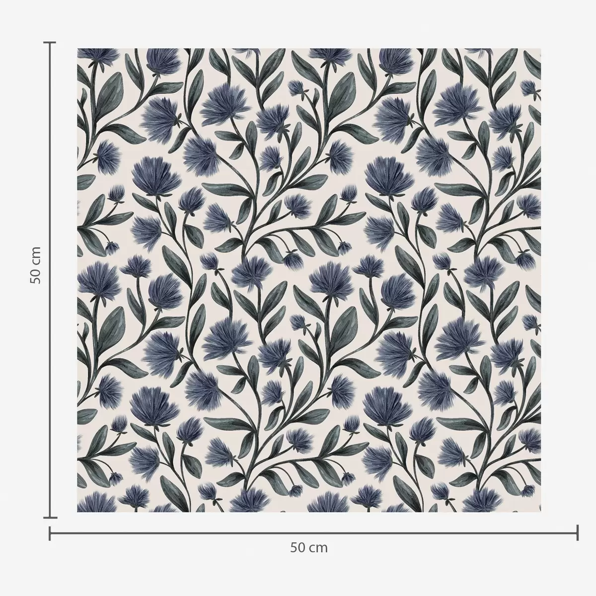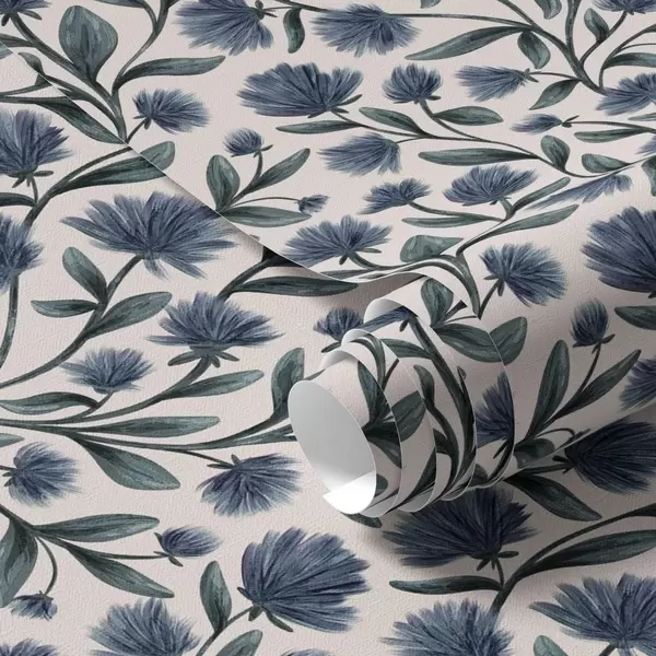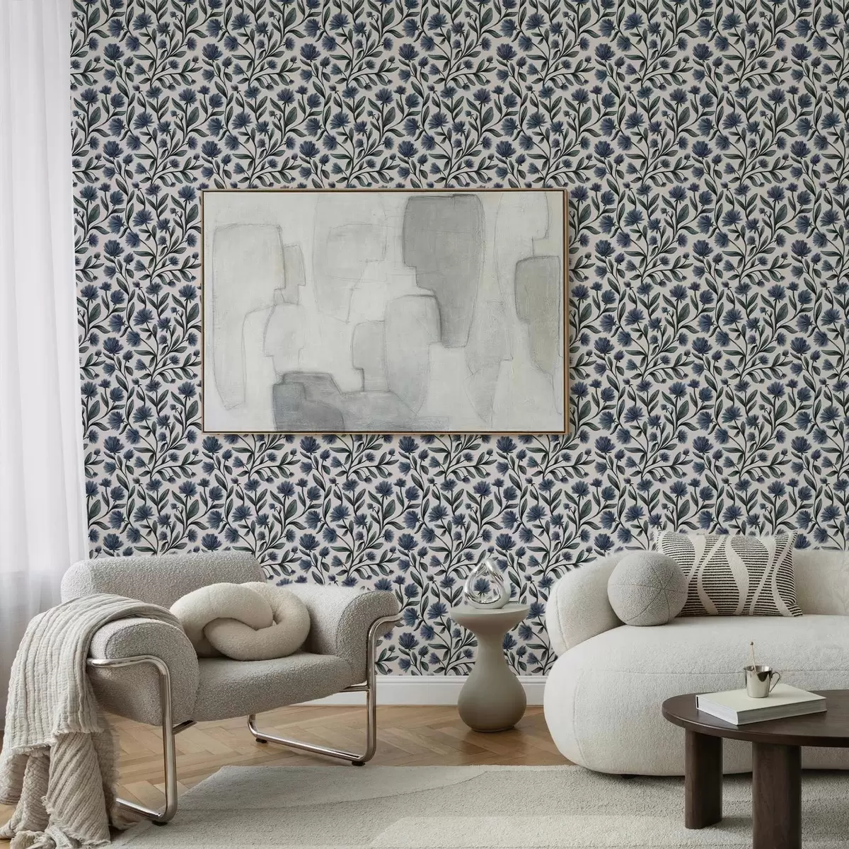 Papiers peints Fleurs sauvages dans une palette bleu-vert sur fond crème Nr. a00623v2