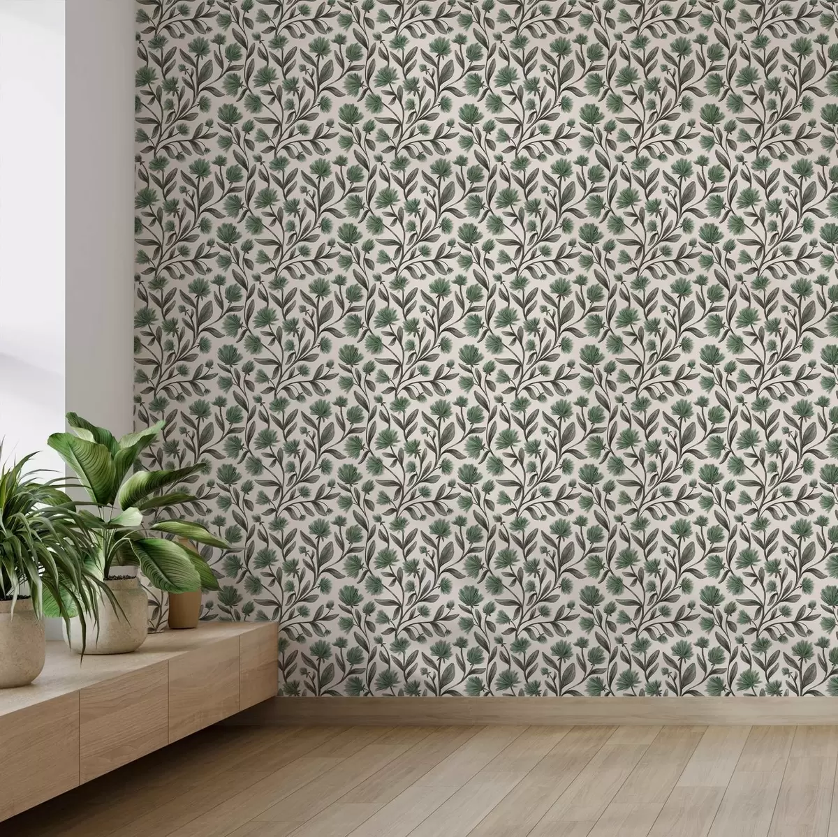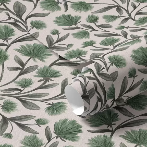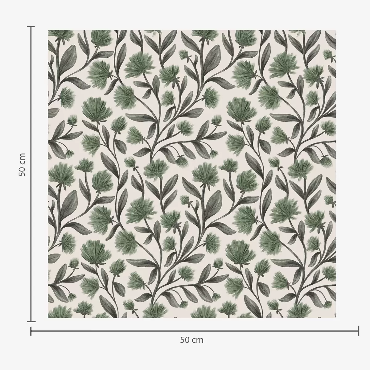 Papiers peints Fleurs sauvages dans une palette verte sur fond crème Nr. a00623v3