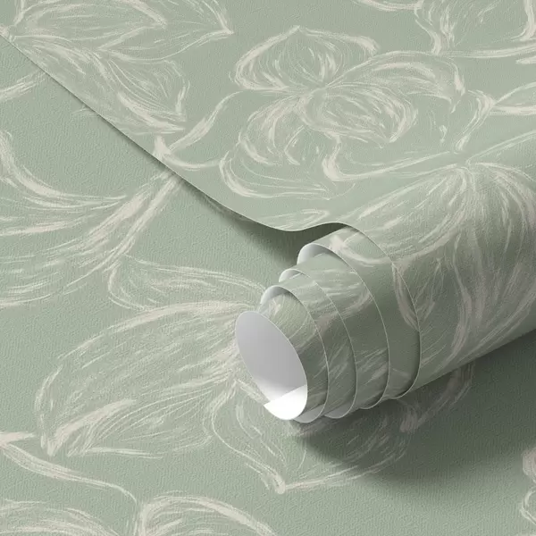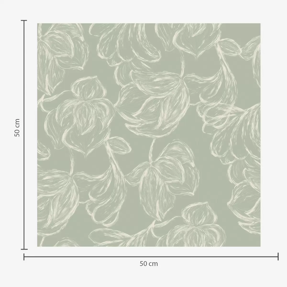 Papiers peints Grandes fleurs linéaires, traits de craie sur fond sauge Nr. a00625v1
