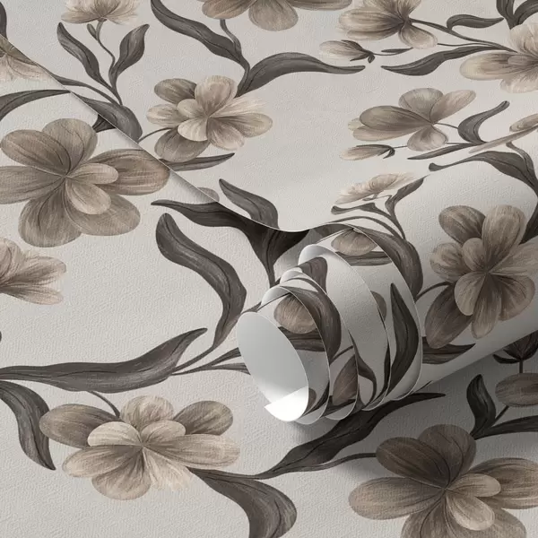 Papiers peints Fleurs beiges et branches sombres sur fond gris clair Nr. a00626v1