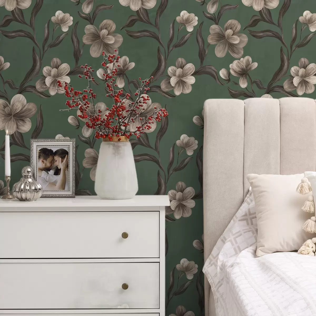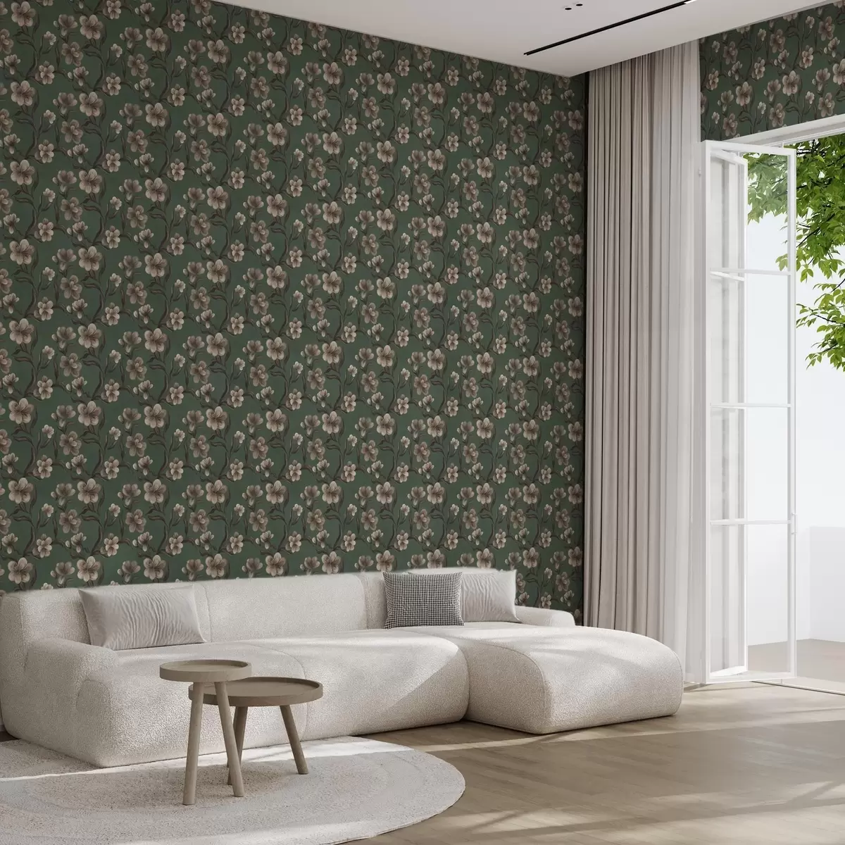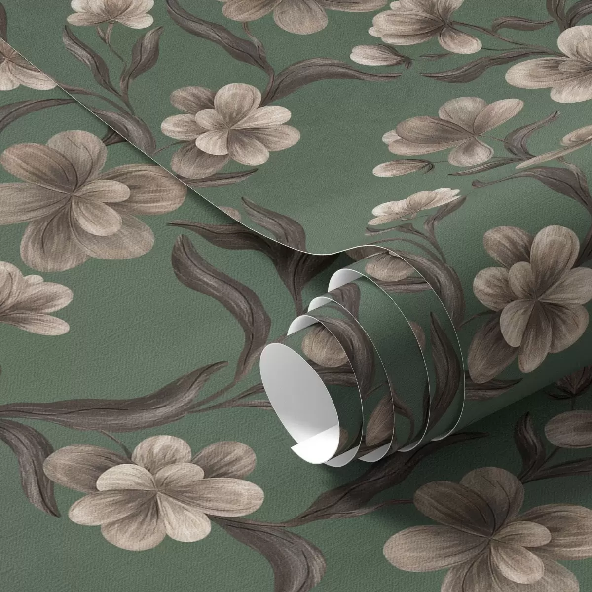 Papiers peints Fleurs beiges sur fond vert intense Nr. a00626v3