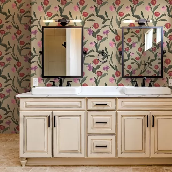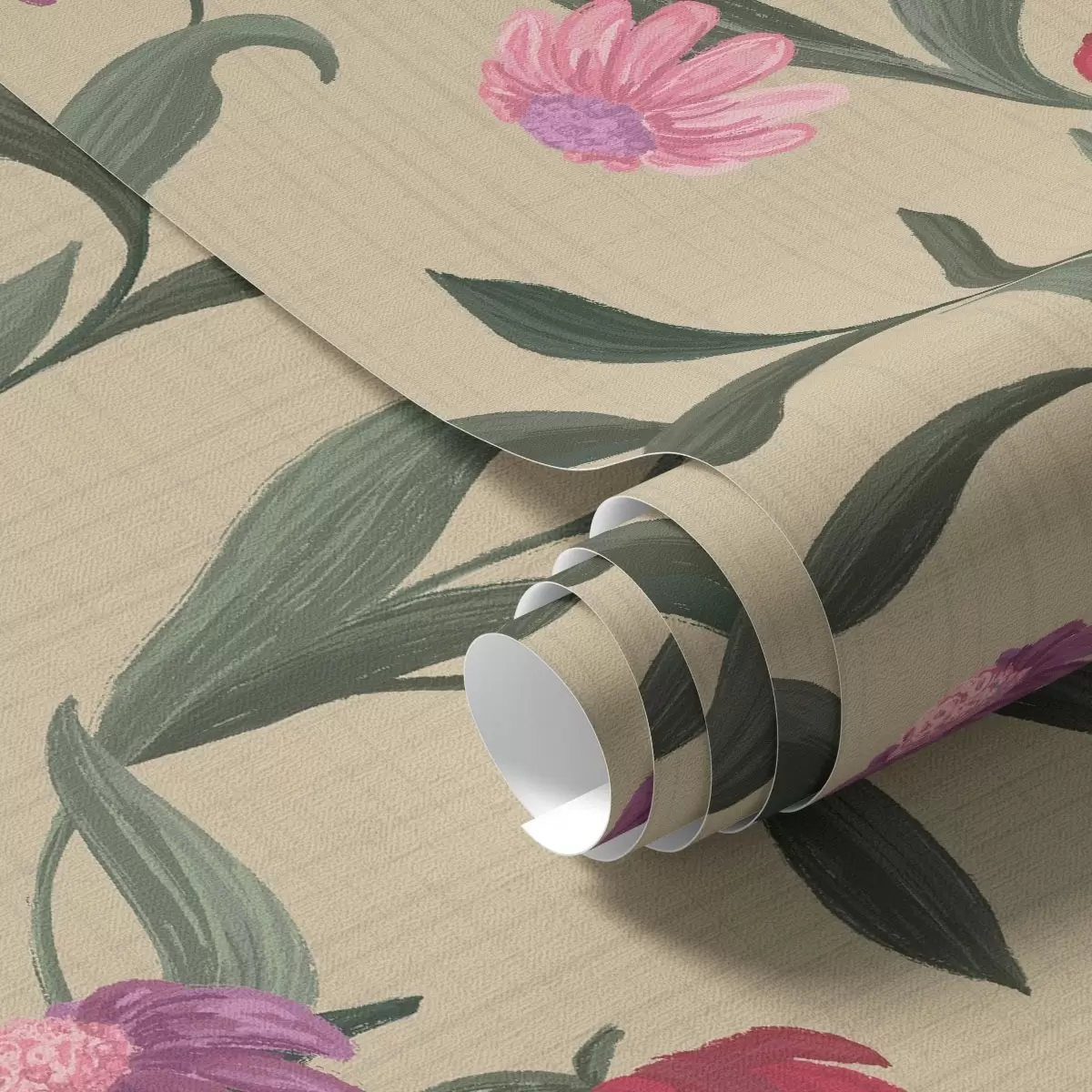 Papiers peints Fleurs rose-rouge sur fond beige, texture dessinée à la main Nr. a00631