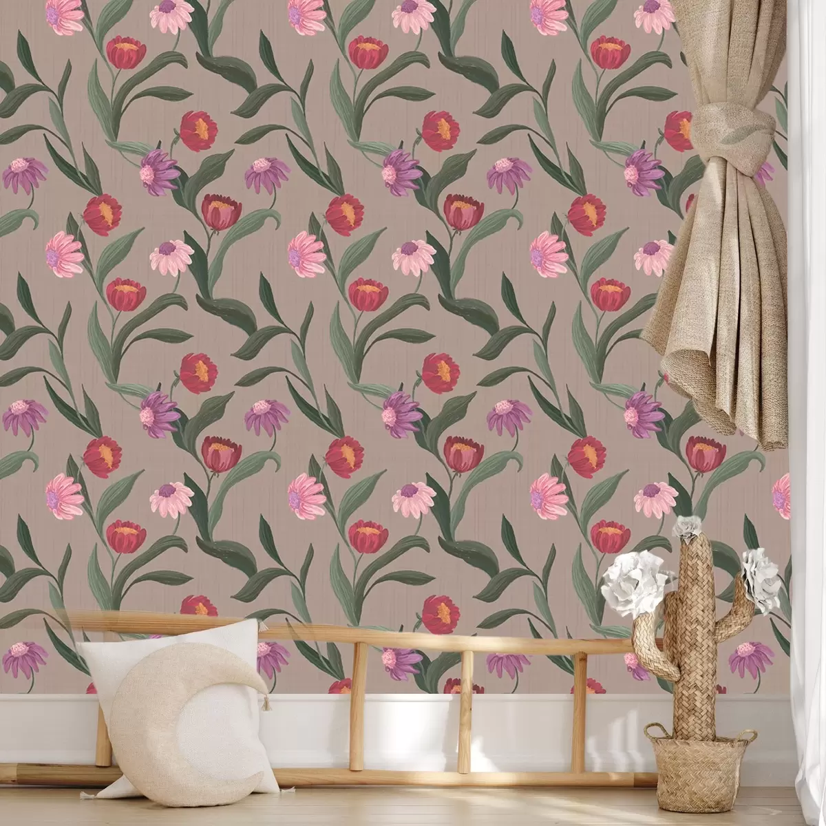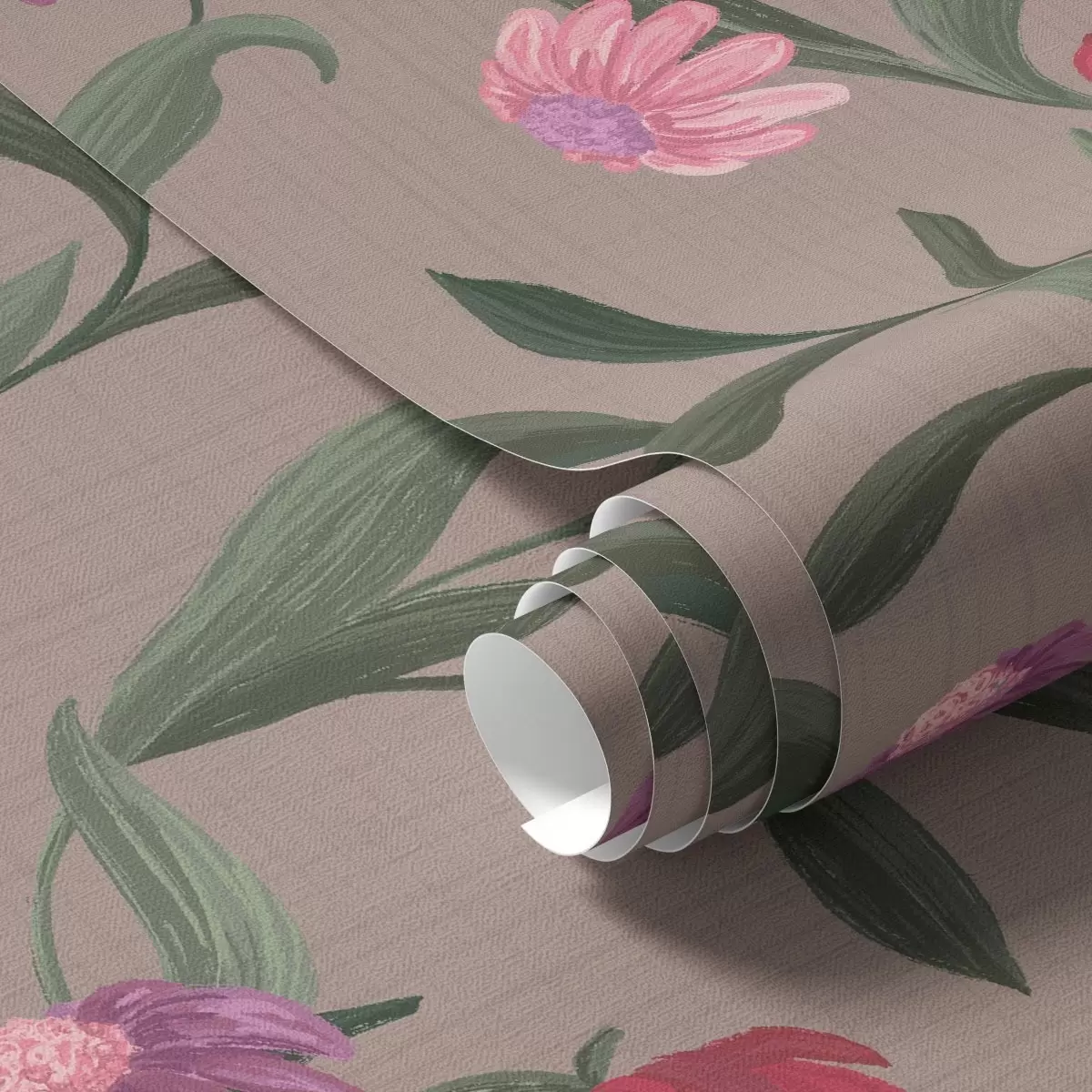 Papiers peints Fleurs rose-rouge sur fond taupe, longues tiges Nr. a00631v2
