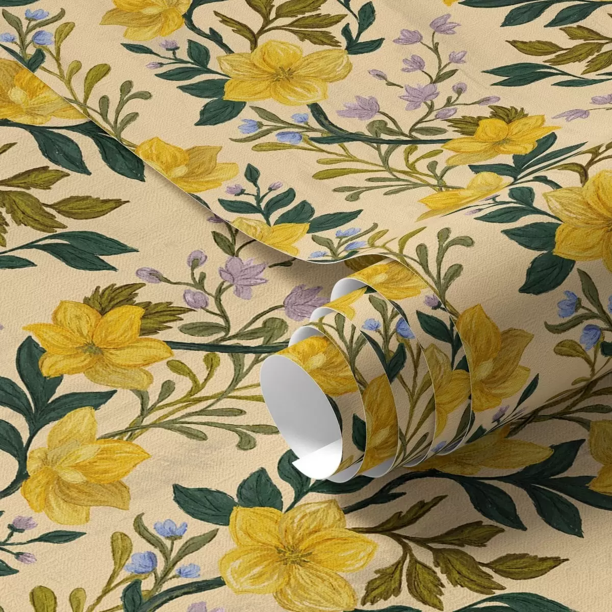 Papiers peints Fleurs jaunes disposées en guirlandes verticales sur fond crème Nr. a00632