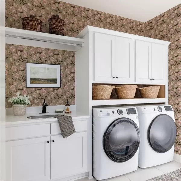 Papiers peints Fleurs roses et papillons sur fond beige olive Nr. a00633v2