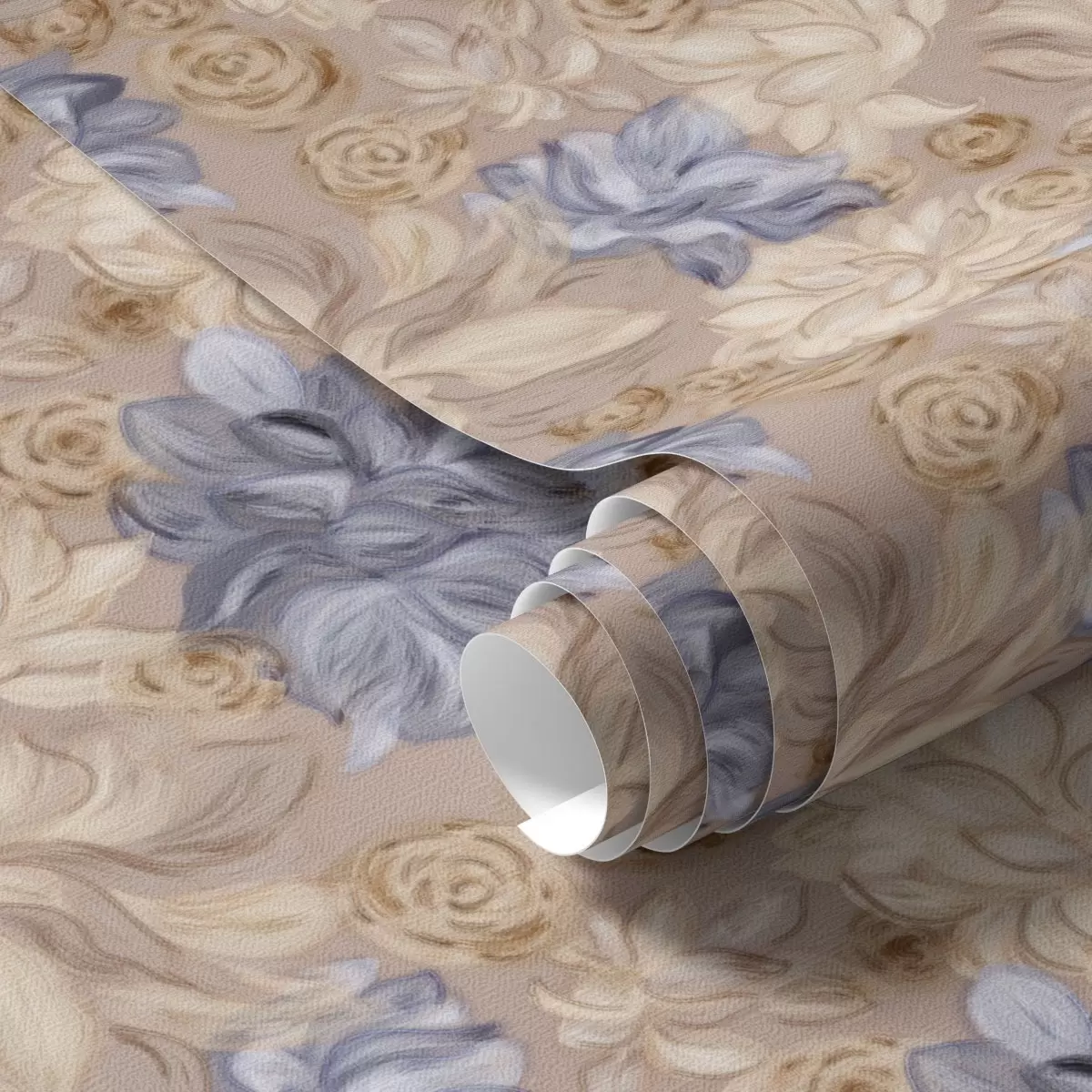 Papiers peints Crème luxuriante et fleurs bleues dans une palette pastel Nr. a00634