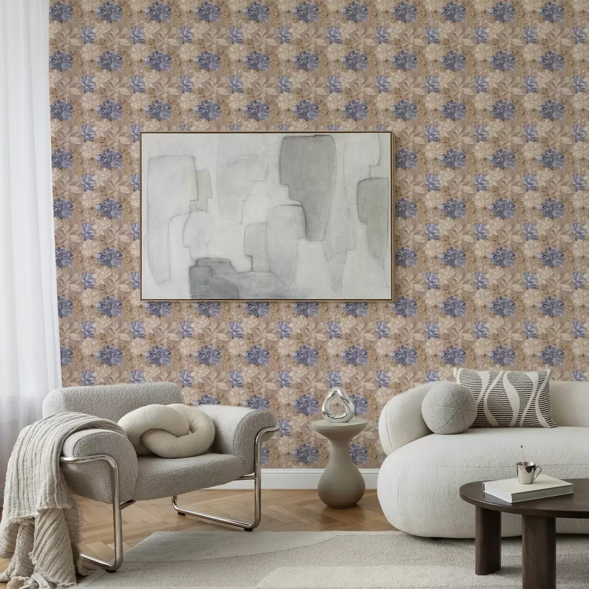 Papiers peints Crème luxuriante et fleurs bleues dans une palette pastel Nr. a00634