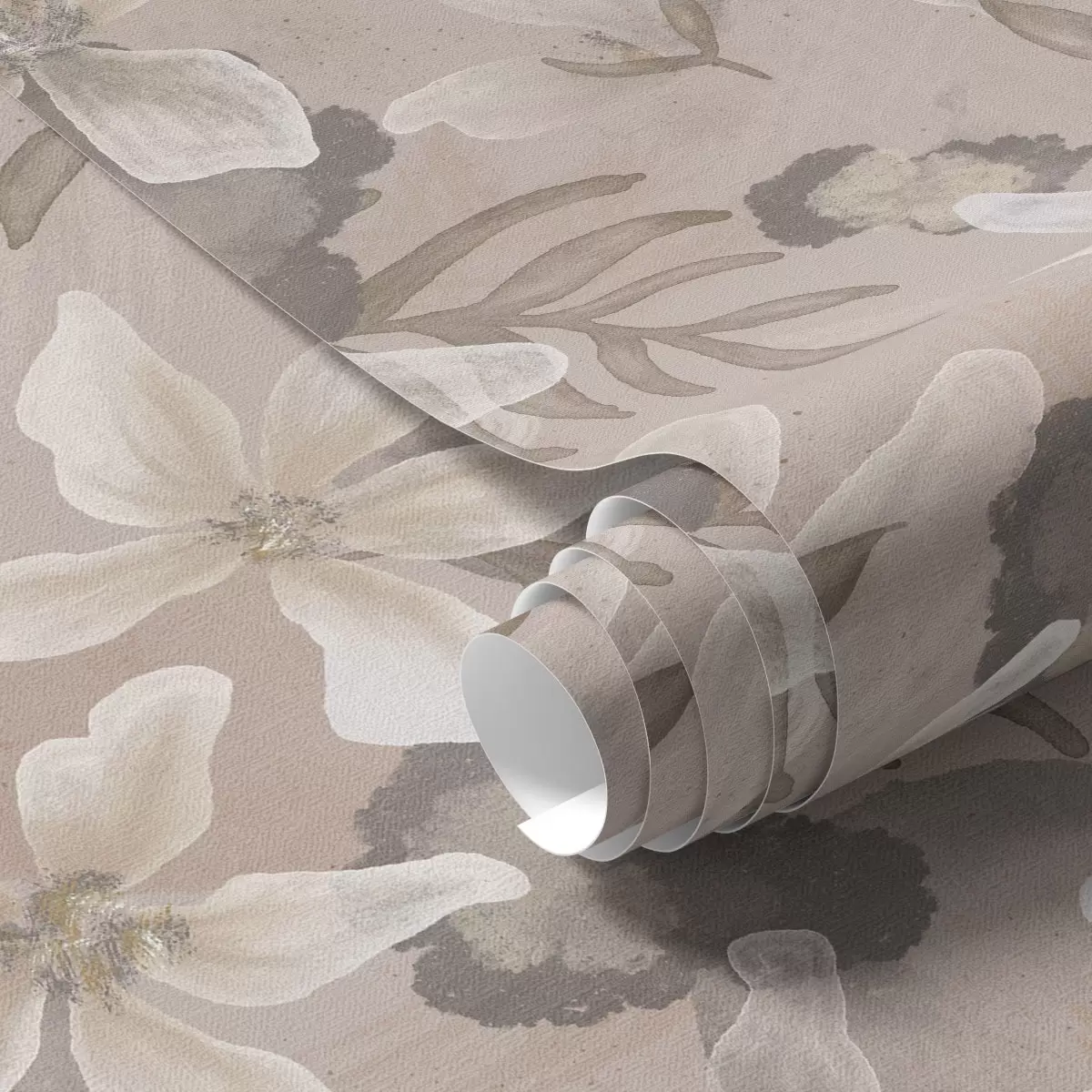 Papiers peints Grandes fleurs beiges avec des taches abstraites à l'aquarelle Nr. a00635
