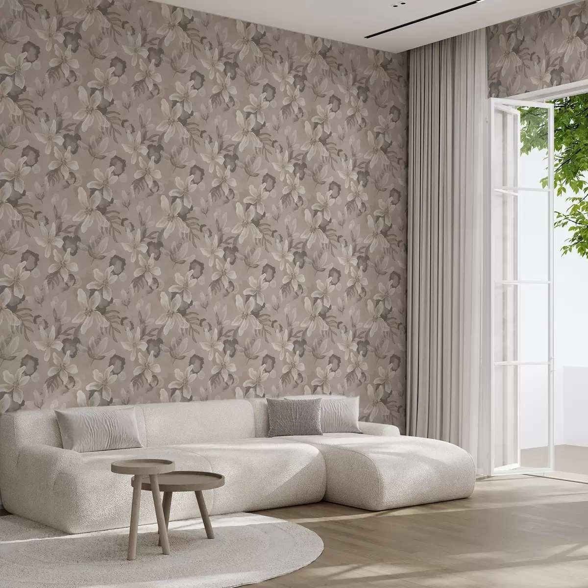 Papiers peints Grandes fleurs beiges avec des taches abstraites à l'aquarelle Nr. a00635