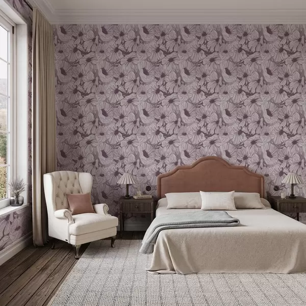 Papiers peints Fleurs linéaires dans une palette de couleurs fraîches rose lilas Nr. a00636v1