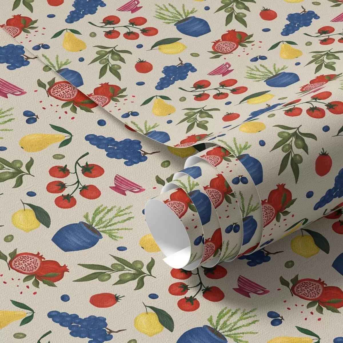 Papiers peints Motif éclatant avec des fruits, des branches et des vases Nr. a00637
