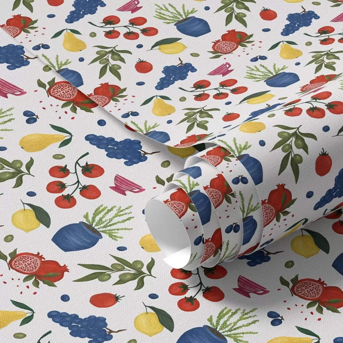 Papiers peints Motif botanique aux couleurs vives sur fond blanc Nr. a00637v1