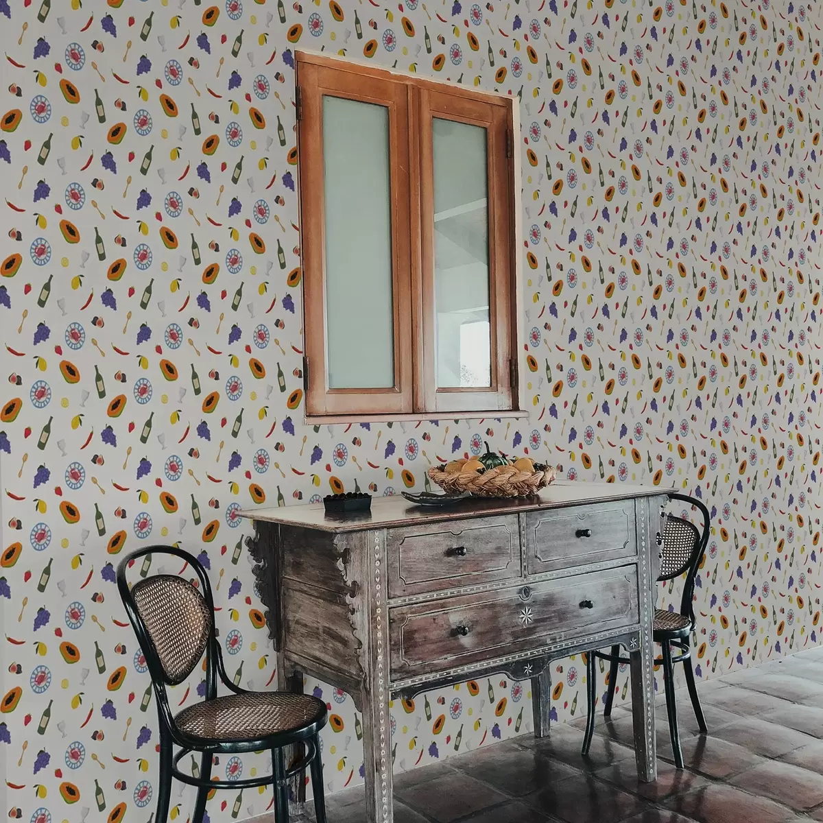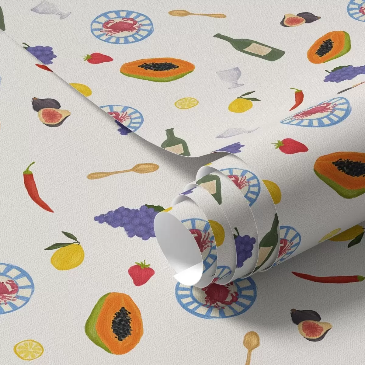 Papiers peints Fruits, vin et épices disposés sur un fond clair Nr. a00639