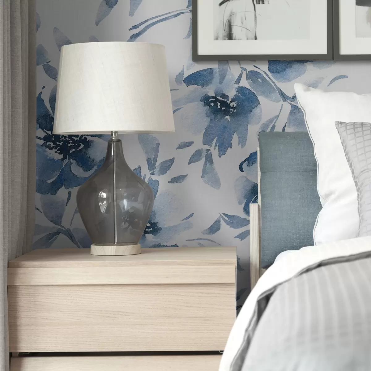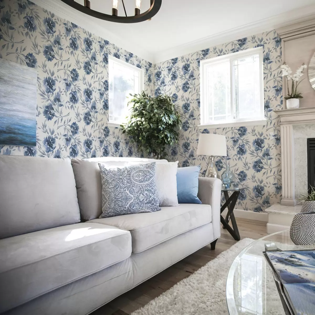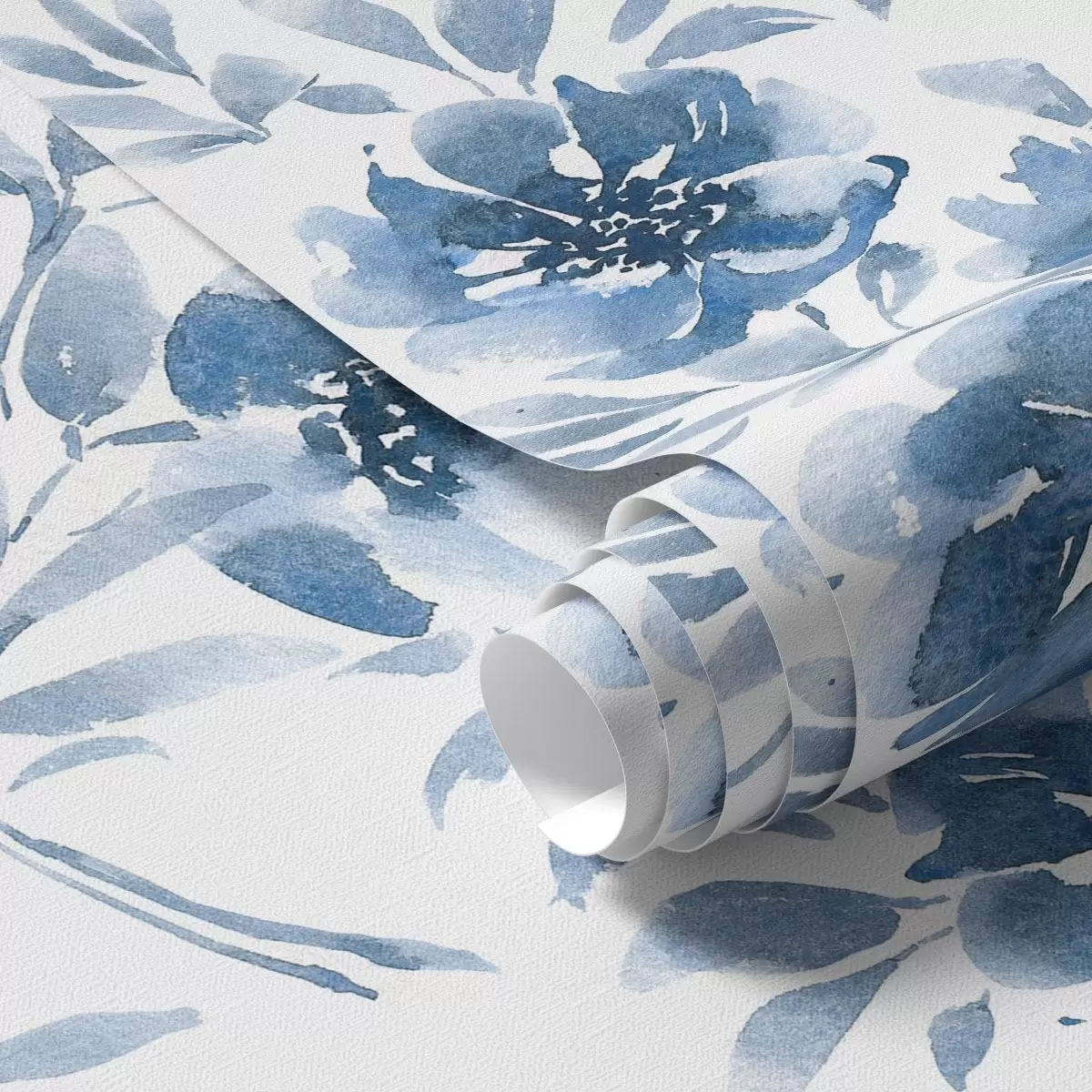 Papiers peints Peonies indigo à l'aquarelle sur fond blanc Nr. a00641
