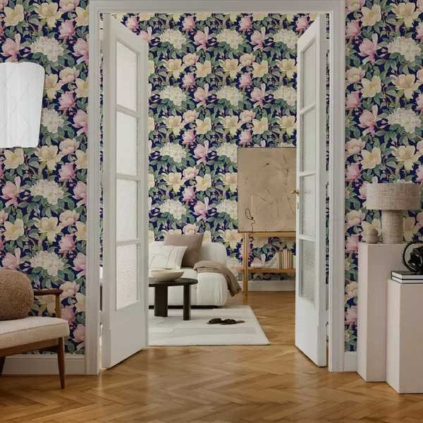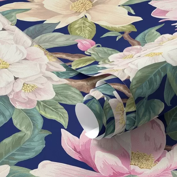 Papiers peints Magnolias et bourgeons sur fond bleu marine foncé Nr. a00644v1