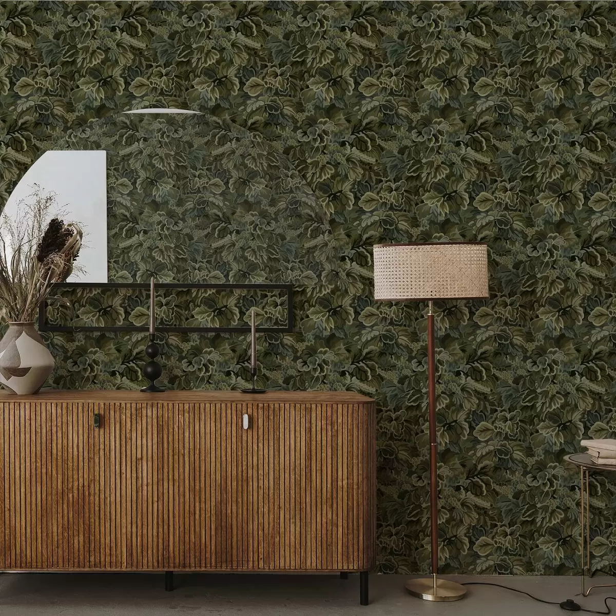 Papiers peints Feuilles de vigne denses dans une palette de vert profond Nr. a00647