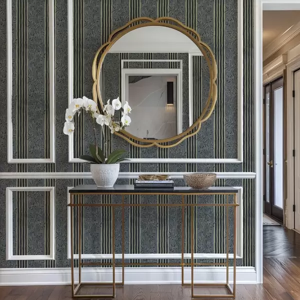 Papiers peints Rayures verticales avec motifs botaniques dans des tons sombres Nr. a00648