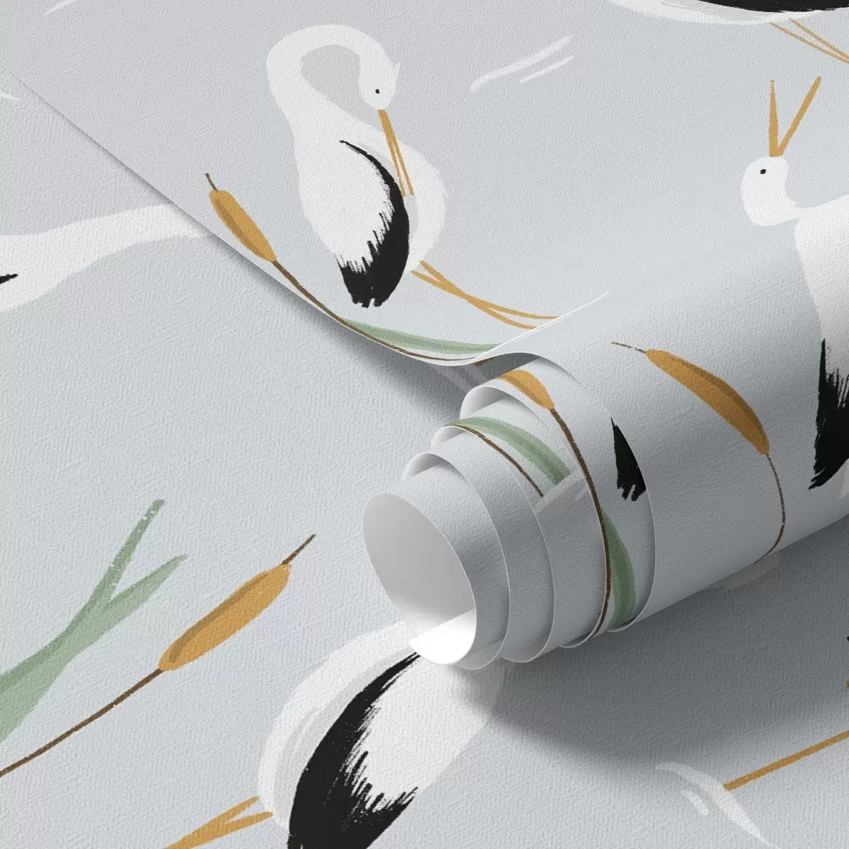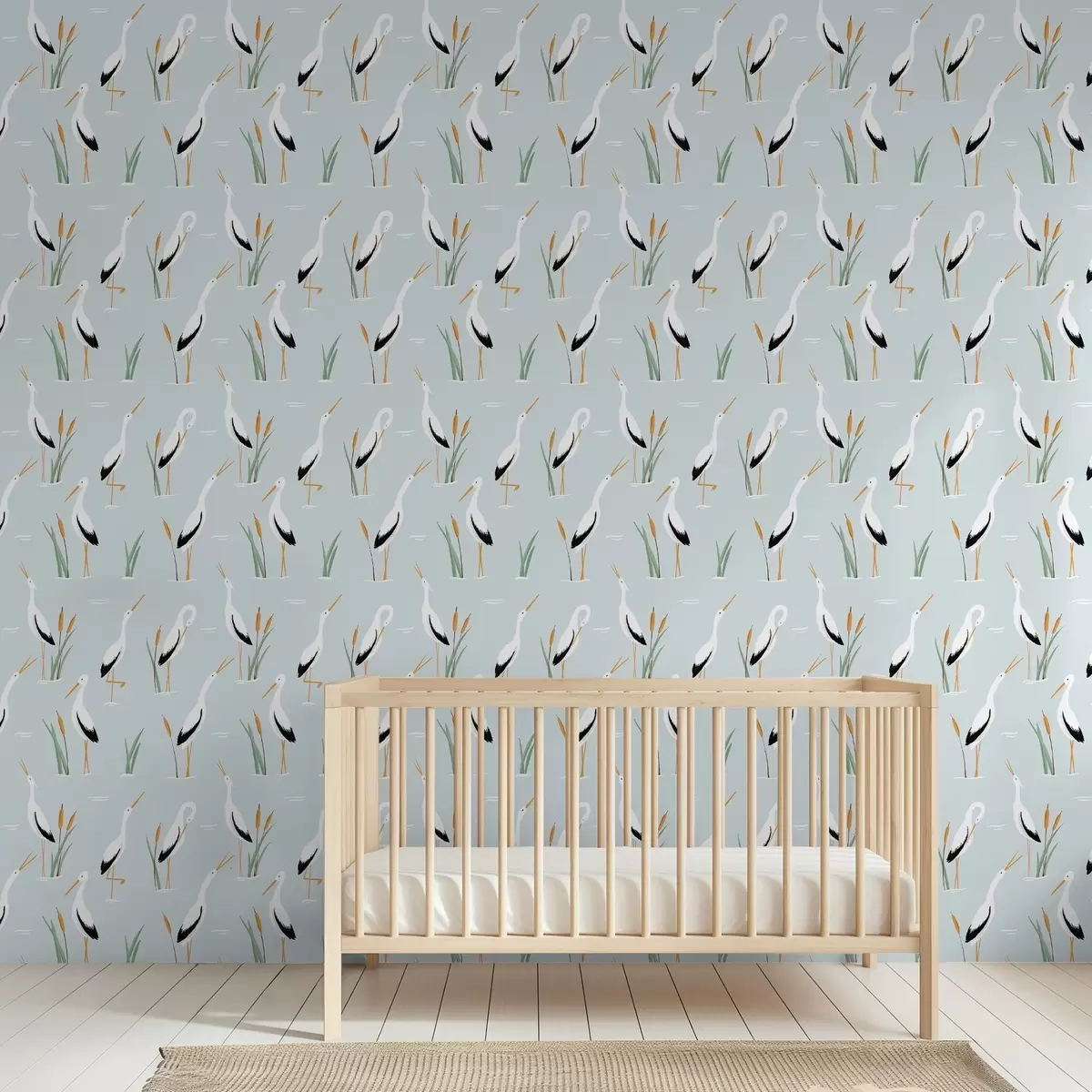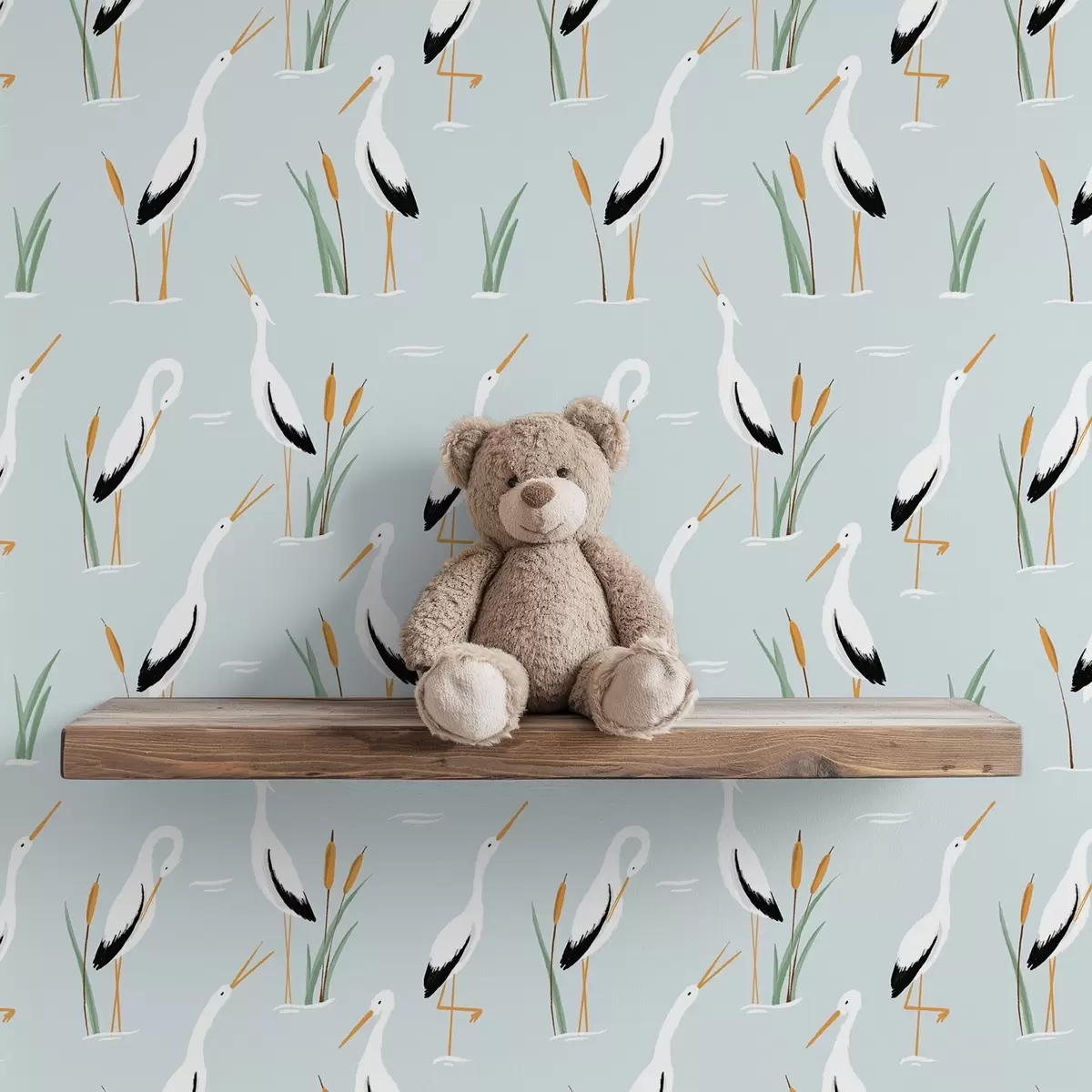 Papiers peints Hérons parmi les roseaux sur un fond bleu clair Nr. a00650v1