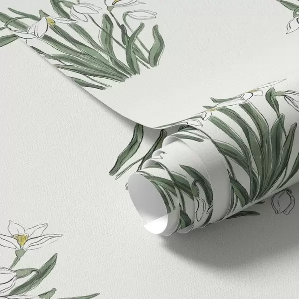 Papiers peints Perce-neige à feuilles vertes sur fond gris clair Nr. a00651v1