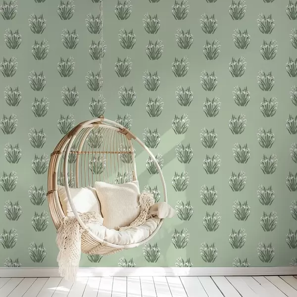 Papiers peints Perce-neige aux feuilles vertes sur fond vert tendre Nr. a00651v4