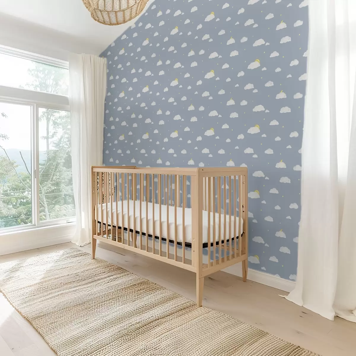 Papiers peints Nuages cotonneux, étoiles et soleil sur fond bleu Nr. a00652