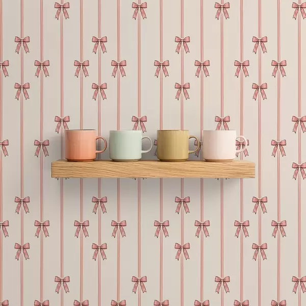 Papiers peints Rubans verticaux avec nœuds, fond ivoire Nr. a00653