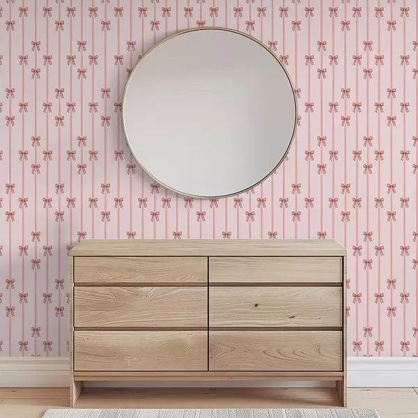 Papiers peints Rubans verticaux avec nœuds, fond rose poudré Nr. a00653v2