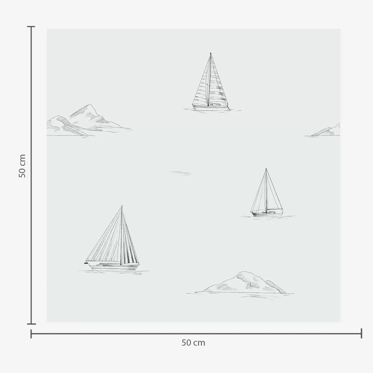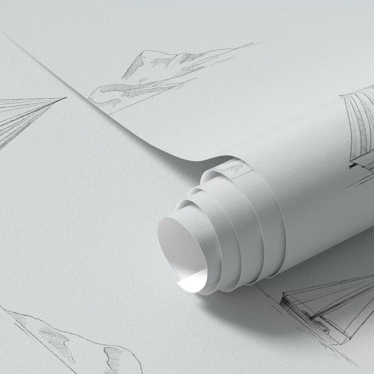 Papiers peints Esquissez des yachts et des îles, sur fond bleu-gris frais Nr. a00654