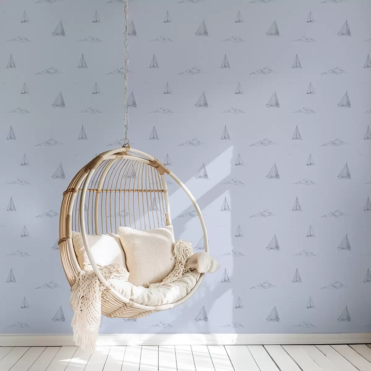 Papiers peints Esquisse de yachts et d'îles, fond bleu Nr. a00654v3