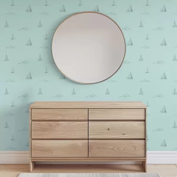 Papiers peints Esquisse de yachts et d'îles, fond vert menthe Nr. a00654v4