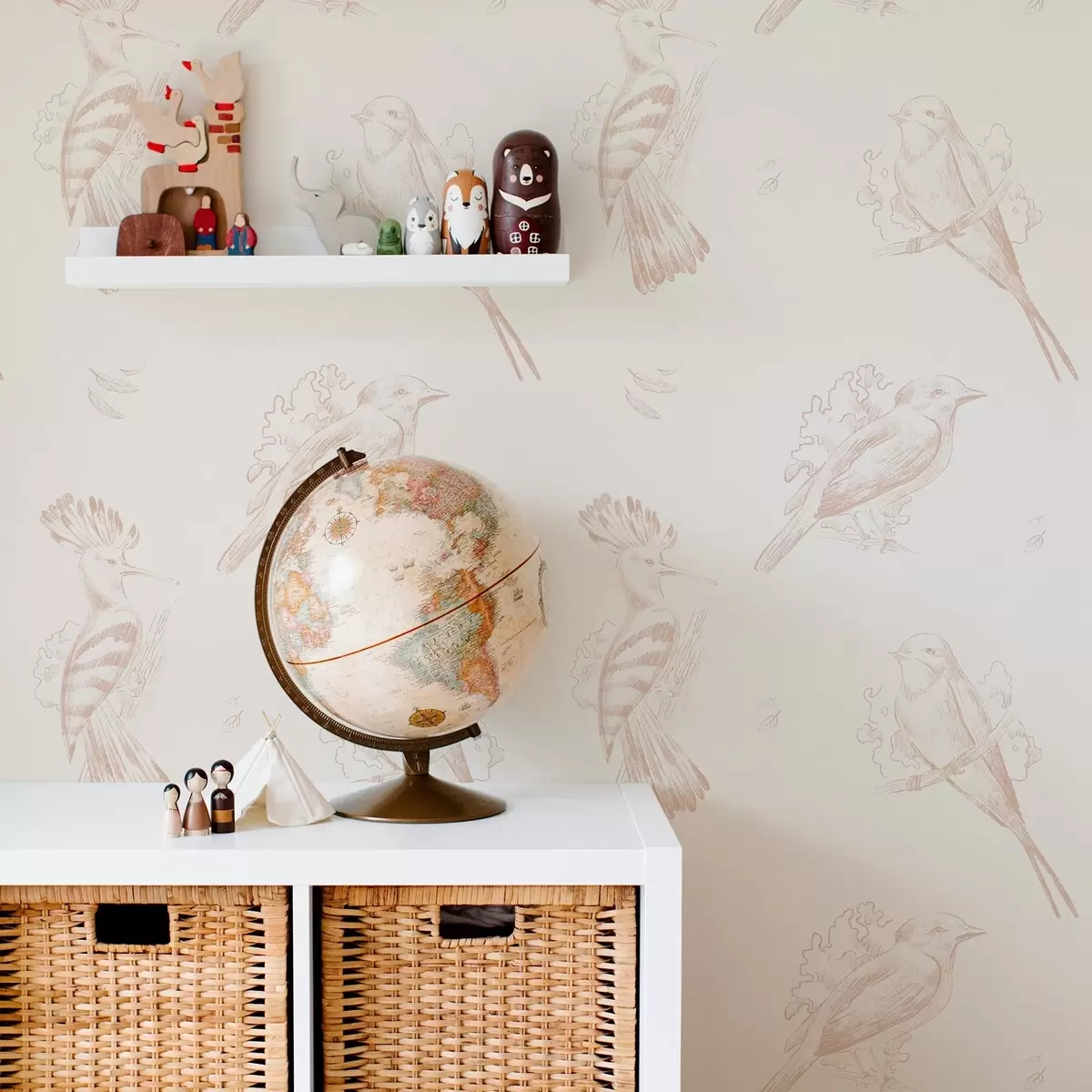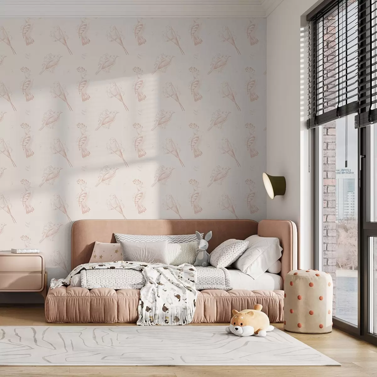 Papiers peints Toile d'oiseaux : croquis d'oiseaux sur fond crème pêche Nr. a00656v2