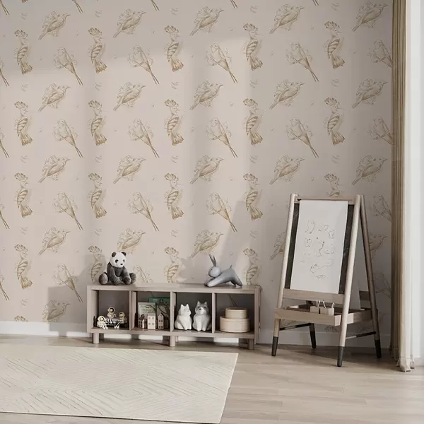 Papiers peints Toile d'oiseaux : croquis d'oiseaux sur fond beige chaud Nr. a00656v3