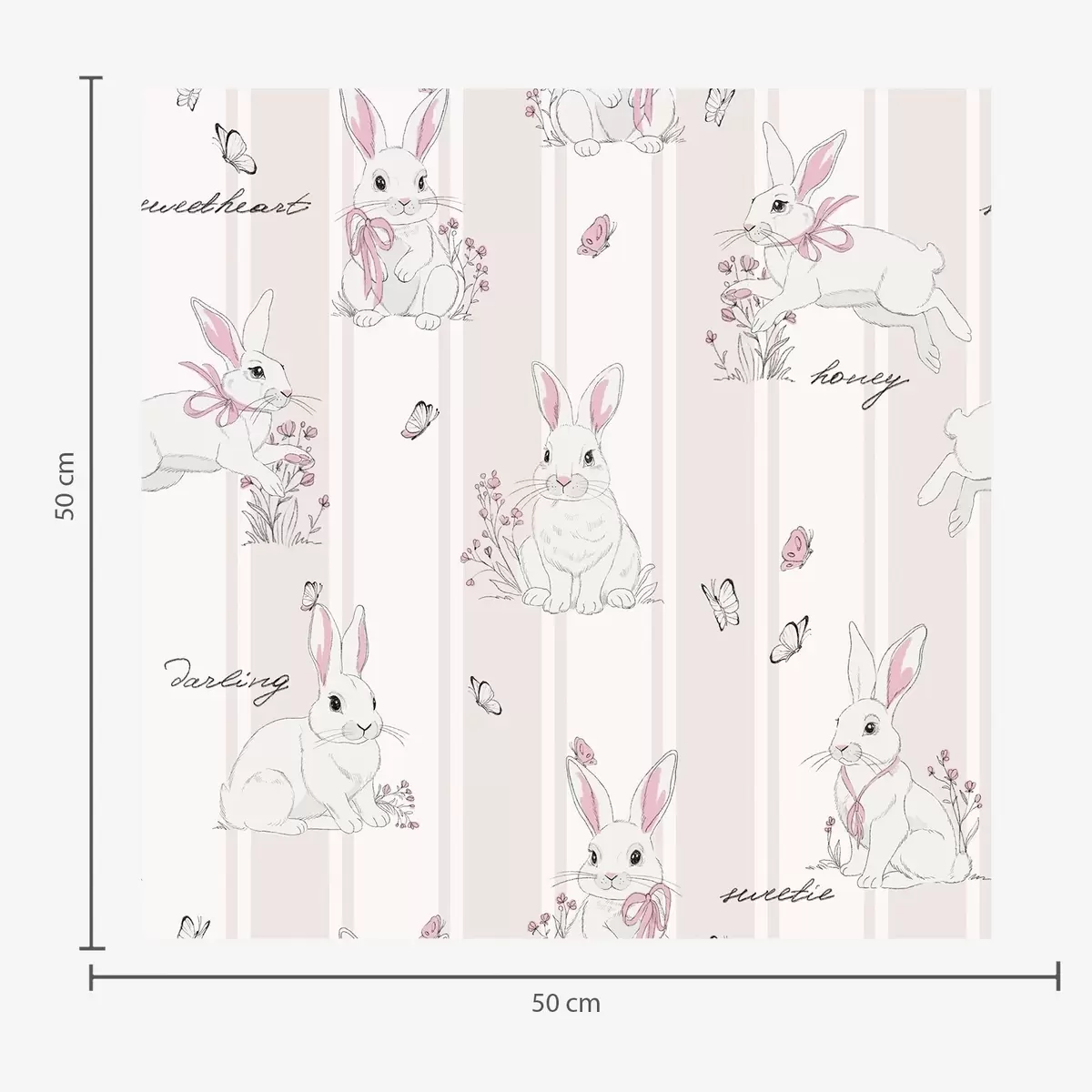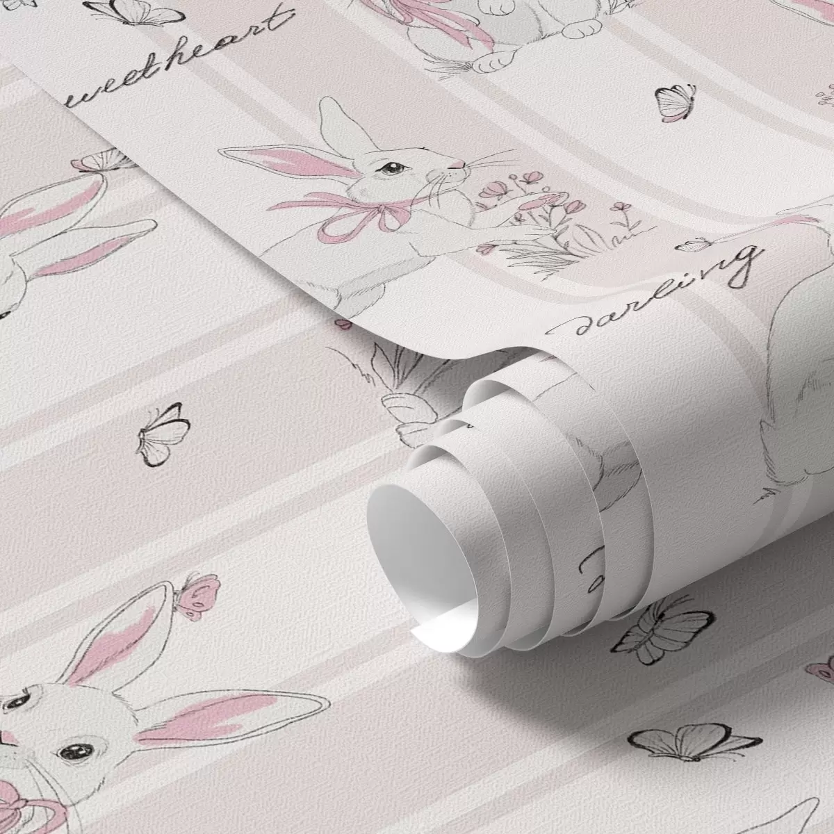 Papiers peints Lapins avec des nœuds, des rayures roses et de petites inscriptions Nr. a00657