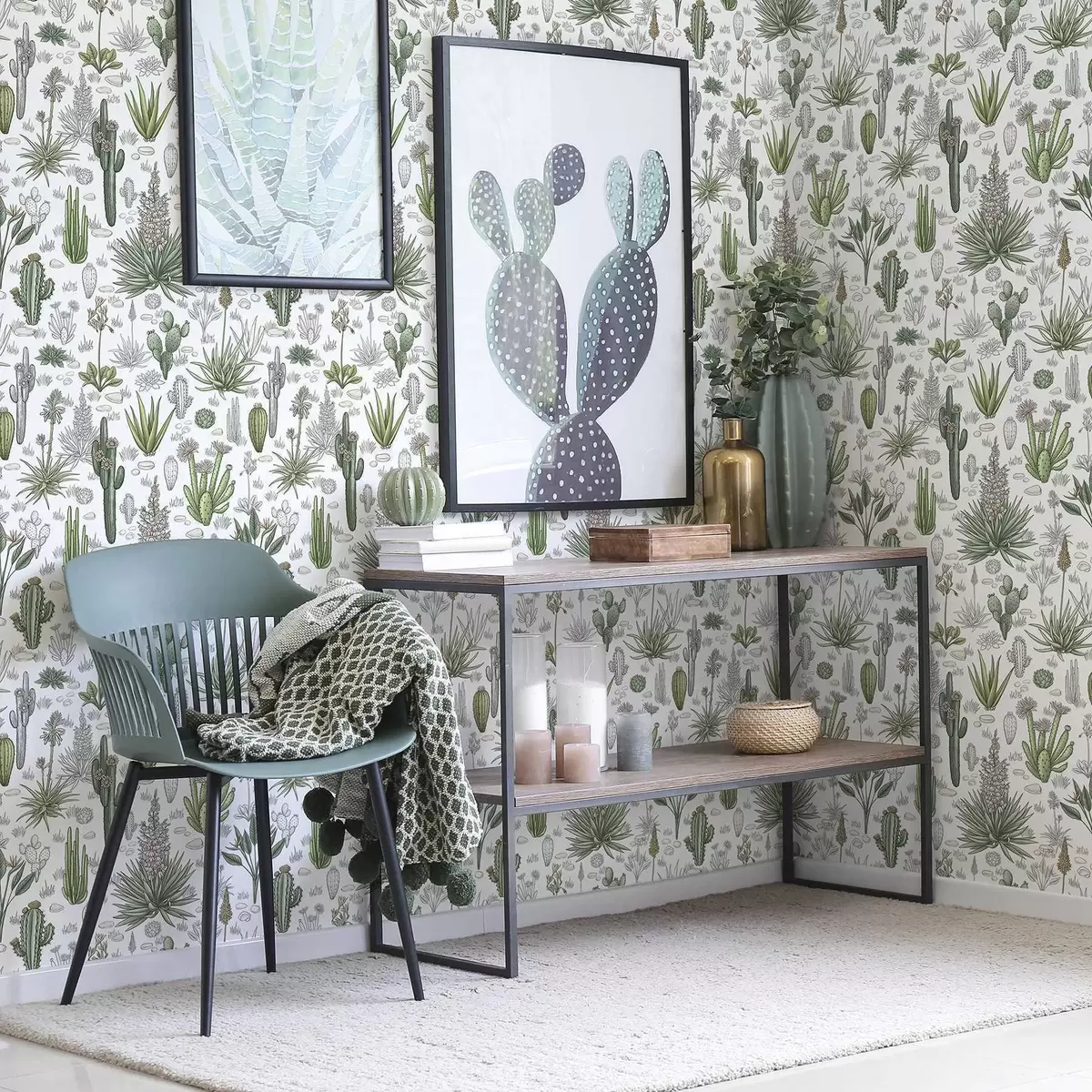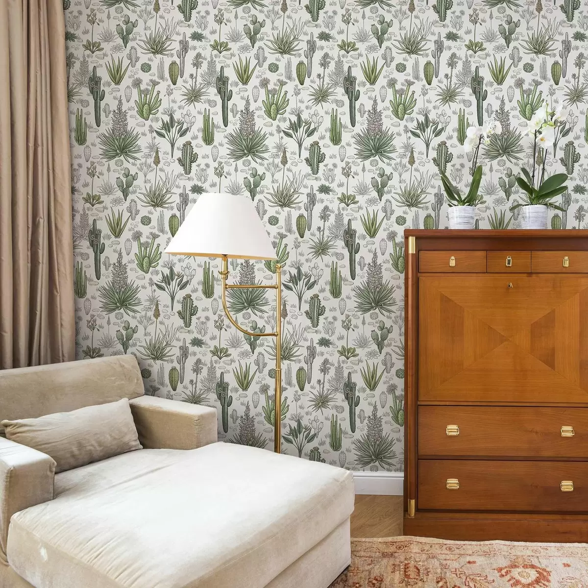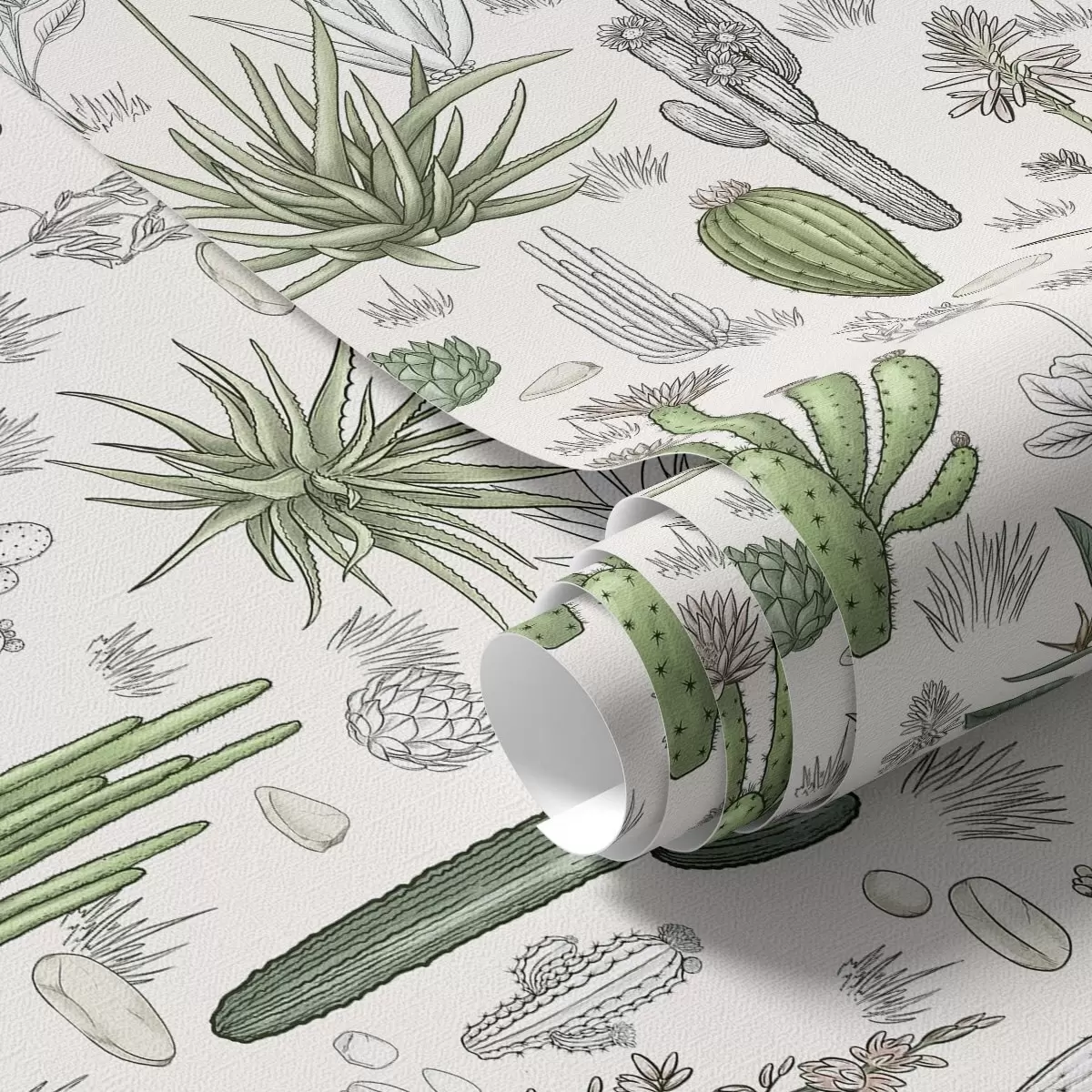 Papiers peints Cactus et plantes succulentes sur fond clair, style linéaire Nr. a00666v1