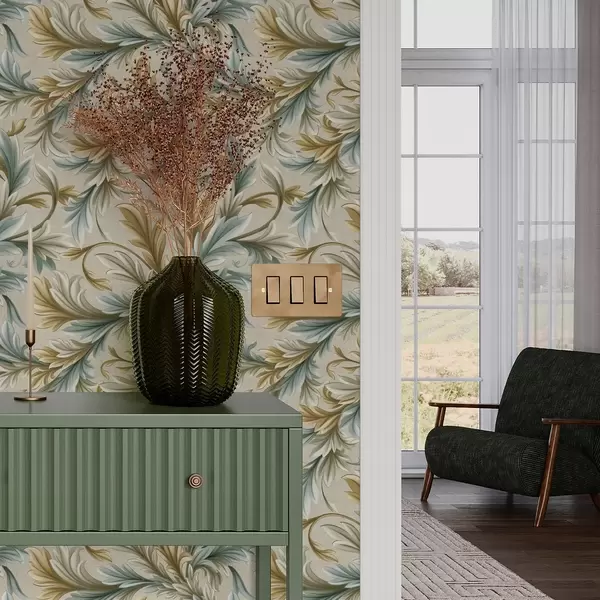 Papiers peints Feuilles volumineuses dans des tons pastel de vert et de beige Nr. a00674