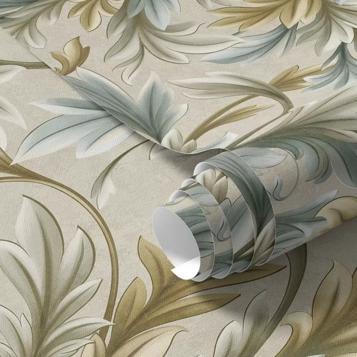 Papiers peints Feuilles volumineuses dans des tons pastel de vert et de beige Nr. a00674