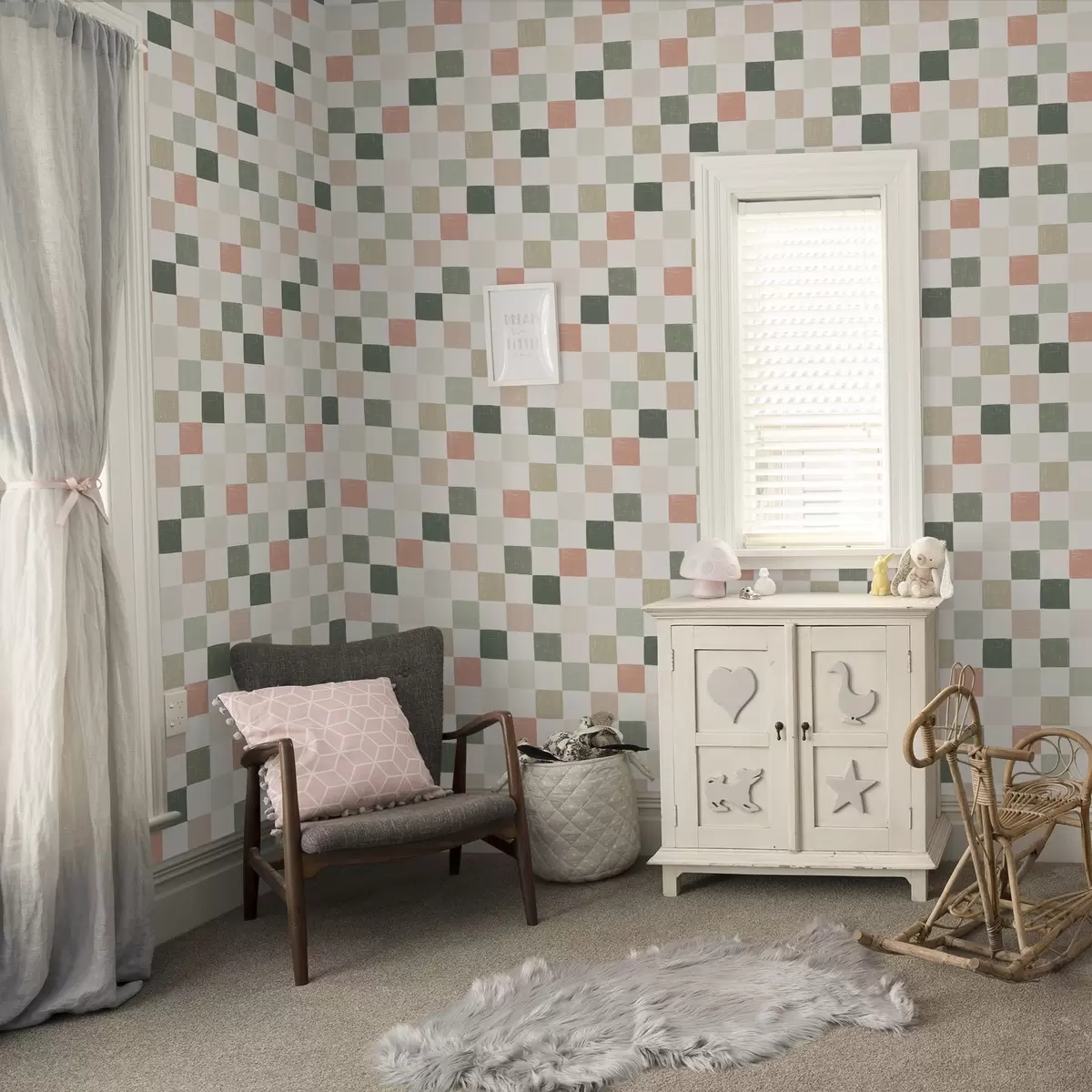 Papiers peints Plaid doux dans les tons pastel vert, rose et beige Nr. a00676