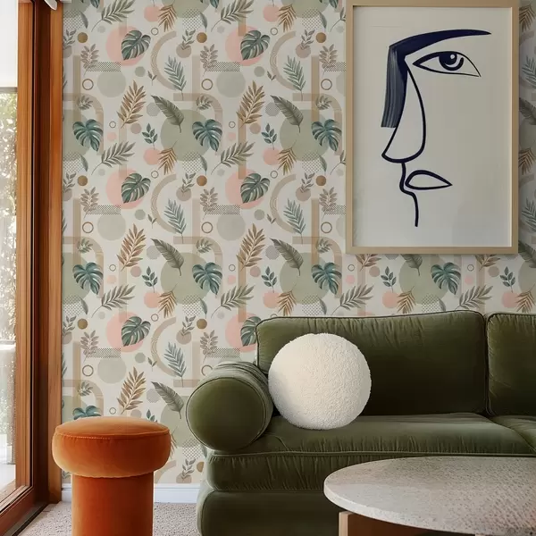 Papiers peints Feuilles et formes géométriques dans des tons chauds et apaisants Nr. a00677