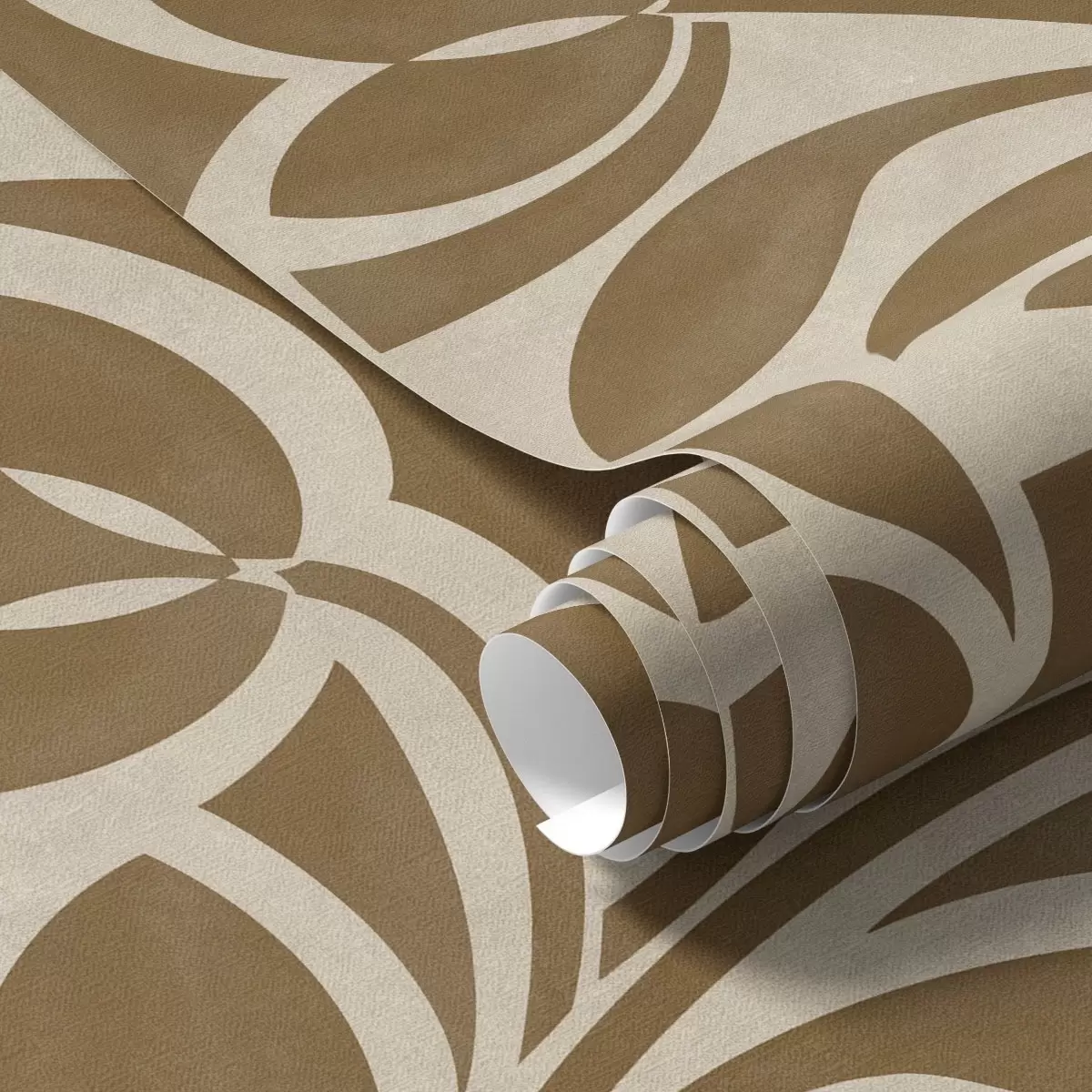 Papiers peints Silhouettes géométriques de feuilles, brun caramel sur fond beige Nr. a00679