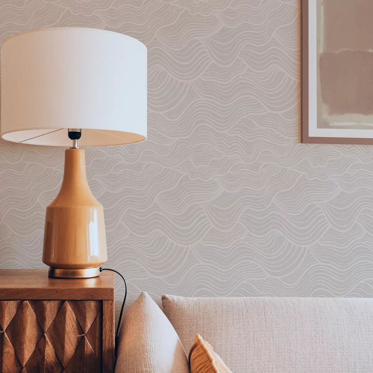 Papiers peints Lignes ondulées ton sur ton sur fond beige chaud Nr. a00681v1
