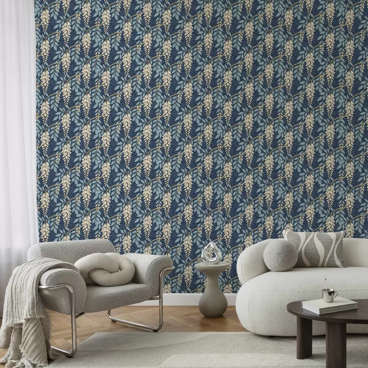Papiers peints Glycine à feuilles bleues sur fond bleu foncé Nr. a00694v2