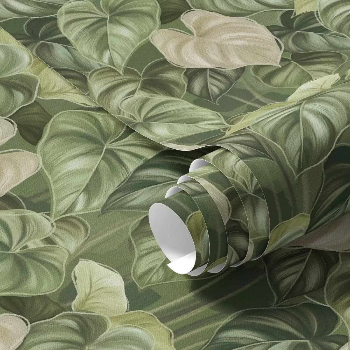 Papiers peints Feuilles luxuriantes de philodendron dans des tons de vert et d'ivoire Nr. a00695