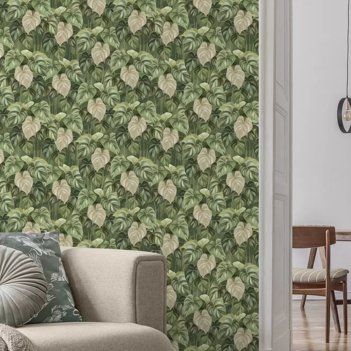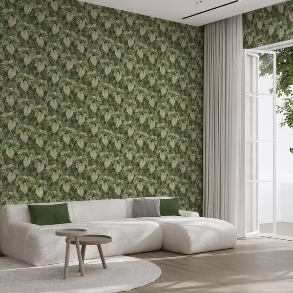 Papiers peints Feuilles luxuriantes de philodendron dans des tons de vert et d'ivoire Nr. a00695
